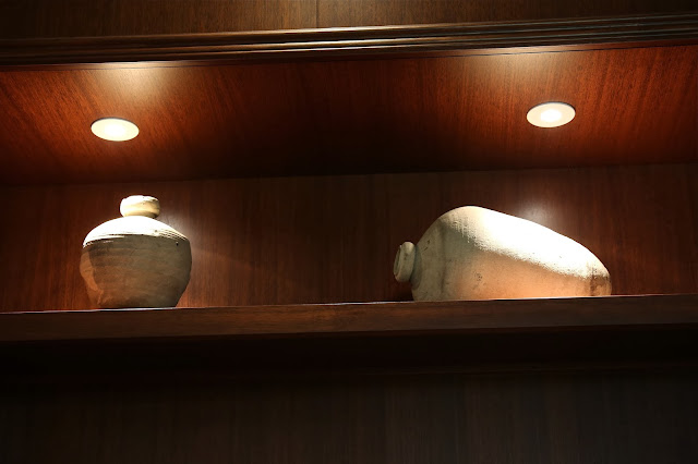 In the below photo on the top shelf are two olive-oil jars